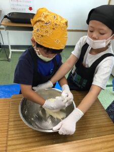 1つの塊になると混ぜるのも力が必要!協力して出来てました🙂🌟