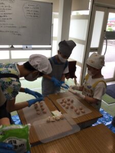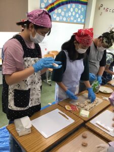 シュウマイを包むのはみんなで手分けして