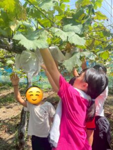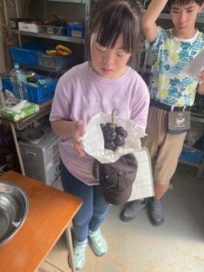 袋を開けると大きなぶどうにみんなびっくり‼️
