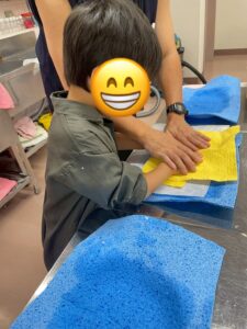 初めての体験で職員さんのお話を興味津々で聞いていました😊
