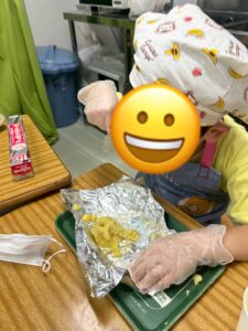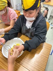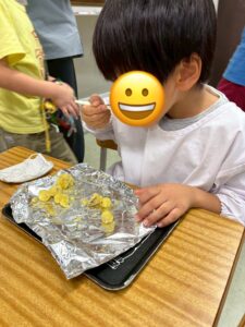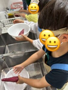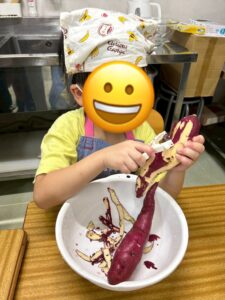 さつまいもを洗ったり、皮を剥いたり、切ったり、みんなで役割を分担して力を合わせて作りました👌