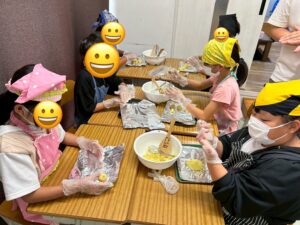 下準備ができたら、みんなでさつまいもを潰して味付けをして丸めます🎶