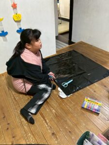 最初に仮装作りをしました✂️