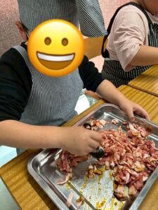 野菜を切ったり、ちぎったり、お肉に下味を付けたり🧅🥕
