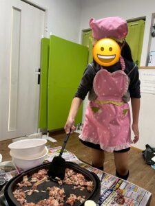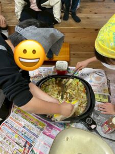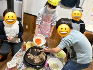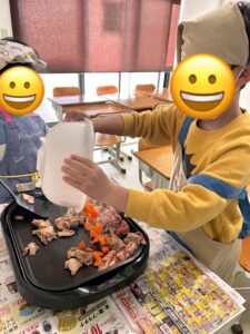 材料の準備が終わったらホットプレートで材料を炒めていきます🔥