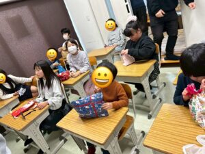 チームに分かれて音楽が止まるまでプレゼントを回しました✨