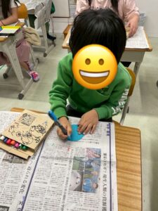 筆で塗ったり、手形をつけたりするお友達も🙌