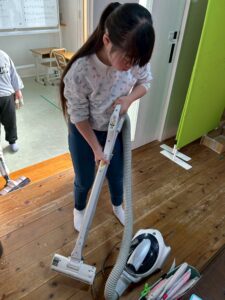 雑巾や掃除機ほうきを使って時間いっぱい掃除を頑張りました💪🏻