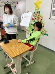 クリスマス会では、スリッパゲーム・目隠しお菓子当てゲームなどをして