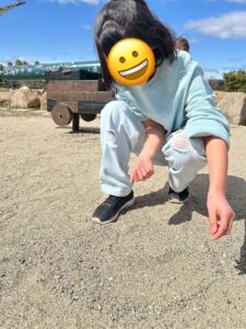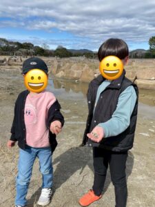 川の近くで貝殻拾いをするお友達も🐚
